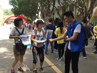 志愿服务的同学正在积极地为考生答疑解惑