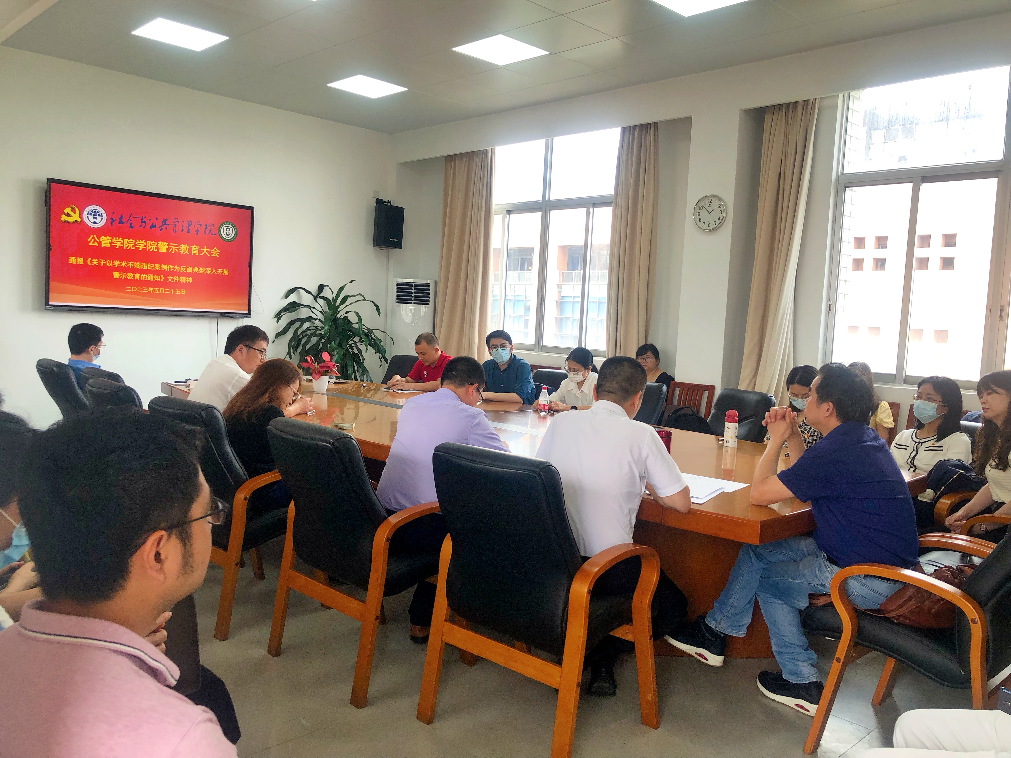 最后,学院召开公管学院警示教育大会。陈哲副书记通报了《关于以学术不端违纪案例作为反面典型深入开展警示教育的通知》文件精神,强调要严格抓好教风和学风,杜绝学术不端。