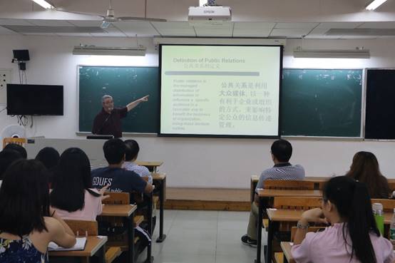 蔡岚老师向同学们介绍本次授课的美国公关学教授Steve Shaner。Steve Shaner是一位理学硕士,美国哈町大学传媒学院助理教授,二十多年来教授公关学、广告学、品牌管理、市场营销及整合传播等课程,曾多次获得“美国杰出青年”、“杰出营销”等专业奖项。