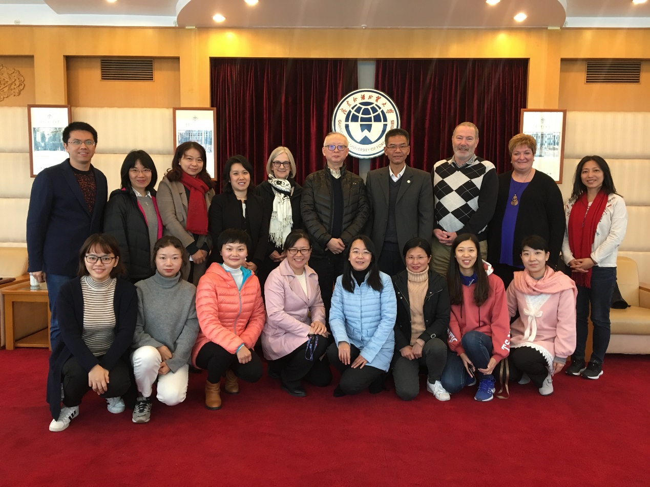 2018年12月13日上午,加拿大不列颠哥伦比亚大学(UBC)社会工作学院殷妙仲院长一行5人来访社会与公共管理学院。我院高云坚书记、彭未名院长、涂斌副院长、张信勇副院长在广东外语外贸大学行政楼迎宾厅会见了代表团。心理学系主任吴艳、社会工作系主任刘春燕及社工系全体教师与会参加了交流。