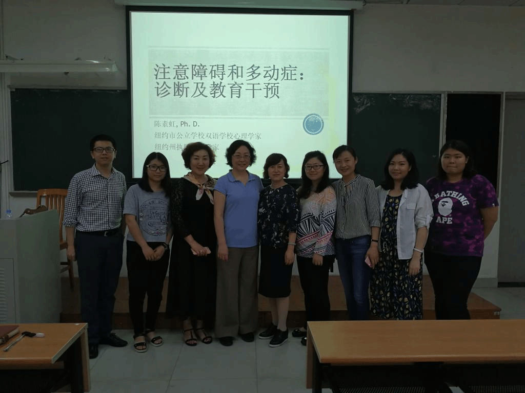 4月10日,纽约州执照职业心理学学家、哥伦比亚大学心理学博士陈素虹做客政管学院在南校区F栋107主讲海外名师讲座,题为“多动症的诊断与干预”,与会的有政管学院副院长付桂芳、启创社会工作中心的显建斯干事等、心理学系张信勇主任和陈新葵老师及心理学系大二、大三的学生。