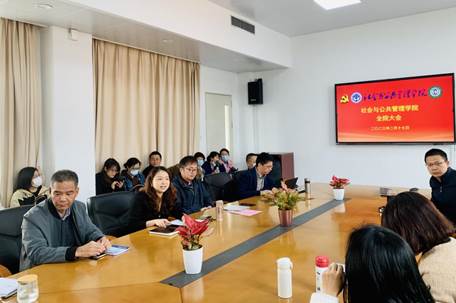 会议伊始,涂斌院长对全院教职工致以新学期的问候和祝福,并布置了新学期的工作任务,她特别强调了我院接下来在学科建设、学位点申报、人才引进方面的相关事宜,对学院3个一流专业建设点的推进、社会工作专业学位博士点和公共管理学术型硕士点的申报、专业人才特别是高层次人才的引进等做了周到部署,并希望全体教职工在新学期精诚合作,推动学院发展迈向新台阶。