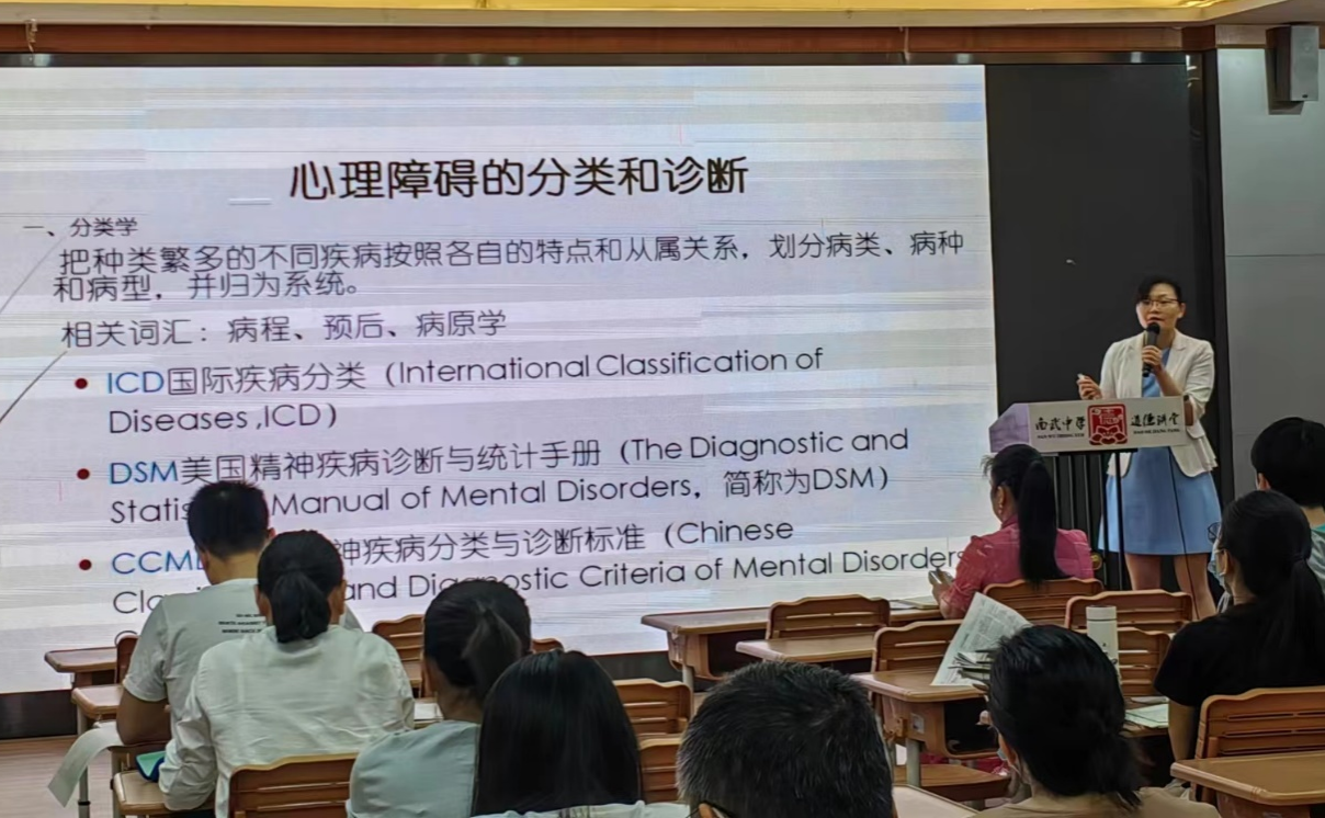 吴艳从心理障碍的分类和诊断以及亲少年的常见异常行为开始进行讲解,让班主任们初步了解到如何识别学生的心理问题。