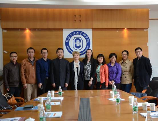 2015年3月26日上午,英国伯明翰大学社会科学部国际合作主任BarbaraFawcett教授、研究生项目主管KellyHall博士、伯明翰大学驻广州办事处项目经理温蕾第三次来访政管学院商谈国际合作事宜。与会的有学院院长彭未名、副院长付桂芳、党委副书记邵兵、社会工作系主任陈胜、国际交流处项目科科长周鹏、学院黄济鳌副教授和柳玉臻博士等。