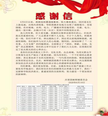 共青团麻榨镇委员会感谢信