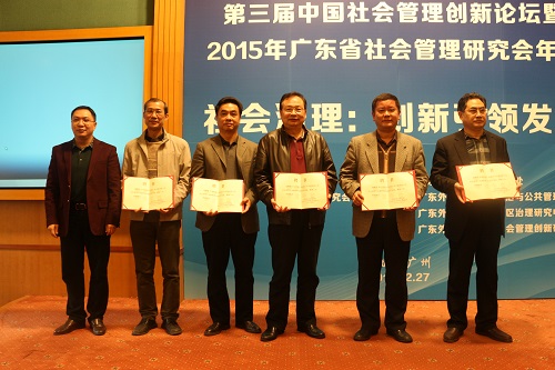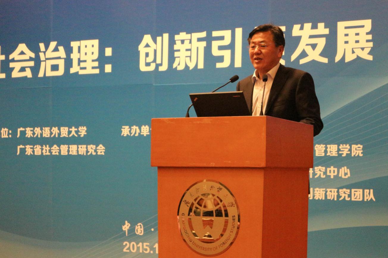 12月27日,第三届中国社会管理创新论坛暨2015年广东省社会管理研究会年会在北校区行政楼三楼国际会议厅隆重举行。广东外语外贸大学校长仲伟合教授,广州市委党校常务副校长王永平教授,广东金融学院党委副书记、纪委书记穆林教授,广东外语外贸大学副校长阳爱民教授,广东外语外贸大学副校长刘海春教授,广东外语外贸大学原副校长、广东省社会管理研究会副会长顾也力教授,广东省社会管理研究会副会长兼秘书长、政治与公共管理学院院长彭未名教授以及省市相关部门领导、高校代表、特邀嘉宾、论坛专家、学校部处及各学院领导、研究会会员和理事等出席了论坛和年会。