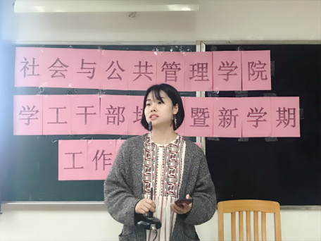 为了进一步全面提高学生干部的综合素质,加强学生干部队伍建设,提升学生干部工作能力,切实将各项学生工作落到实处,公管学院于3月6日晚在南校区教学楼F栋召开学工干部培训暨新学期学生工作布置会。学院党委副书记潘相宇,团委书记兼2017、2018级辅导员老师房瑞佳,2015、2016级辅导员老师白志华,以及学院的各班级班委及团学组织负责人出席了会议。