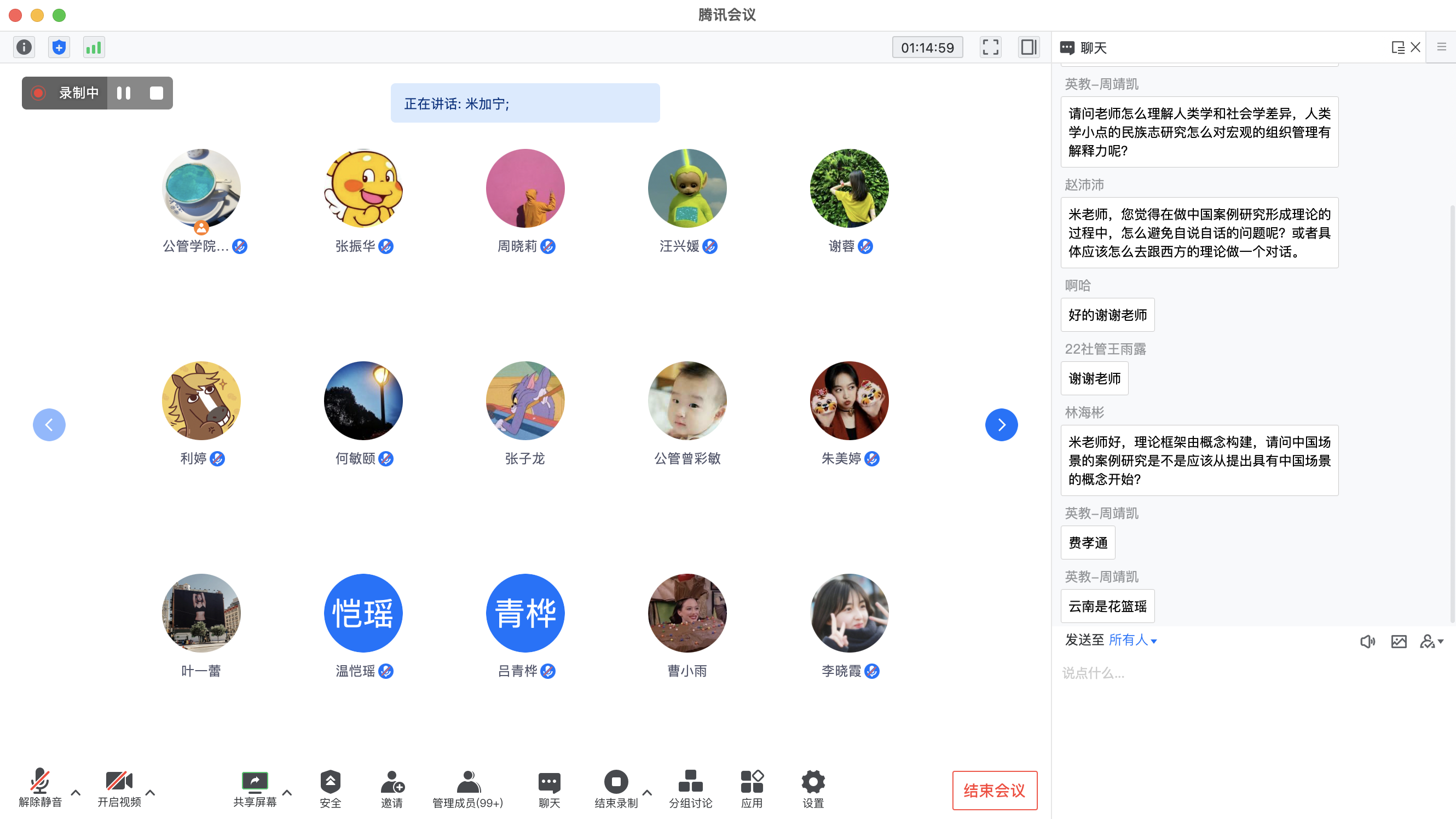 在交流互动环节,米教授与师生进行了深入交流。米教授回应了师生对人类学和社会学差异、中国场景的案例研究分析框架等方面提出的疑问,指出要用最鲜活的案例、理论本土化等来丰富、夯实所开展的实证研究。