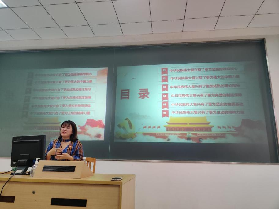 学校百年党史大学生宣讲团成员刘晓琪带来“中华民族伟大复兴何以不可逆转”为题的宣讲,她娓娓道来,从八七会议,到新中国成立,再到两弹一星,从红军战士,再到两弹元勋,向同学们讲解了中华民族伟大复兴是不可逆的。