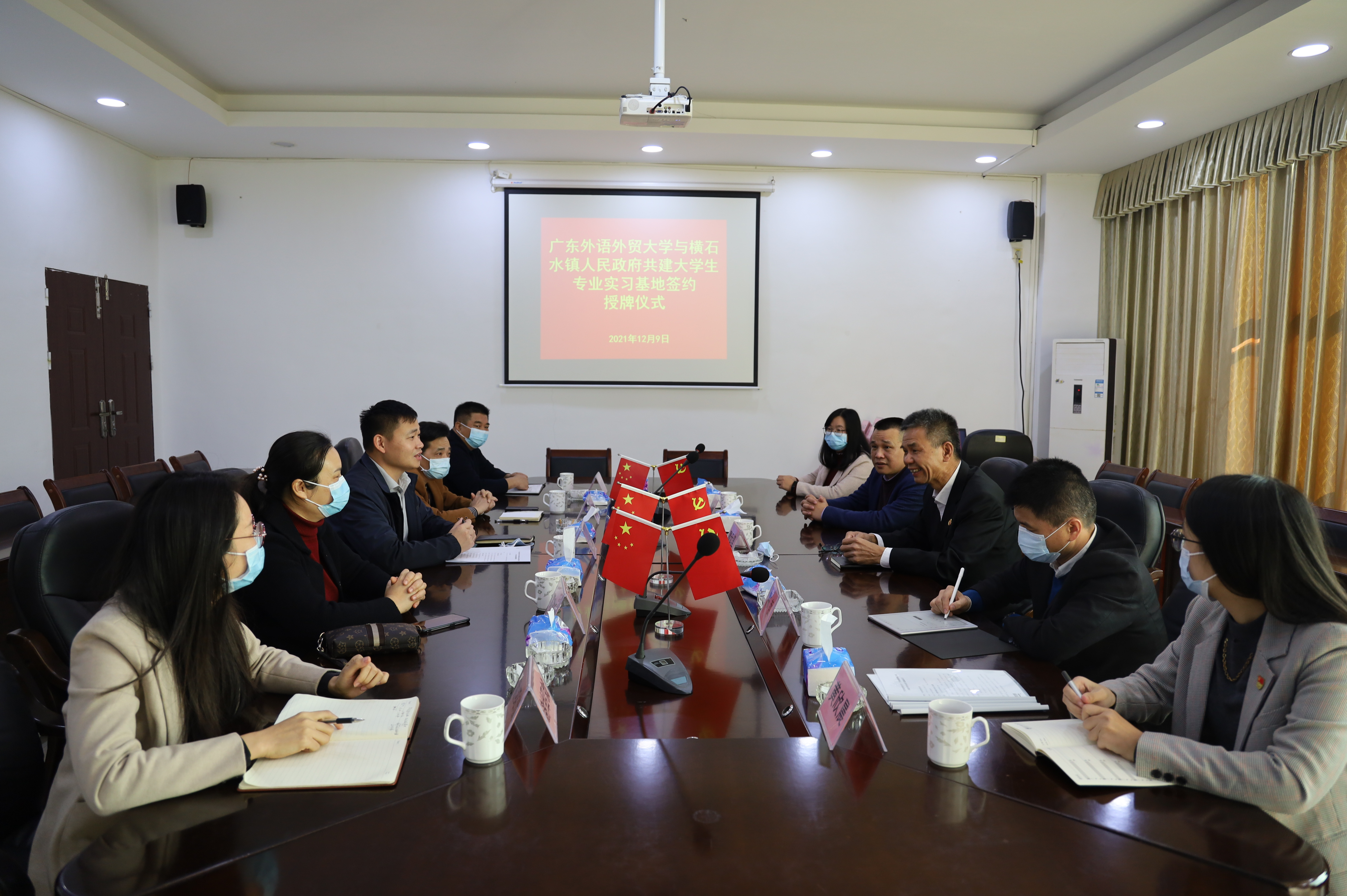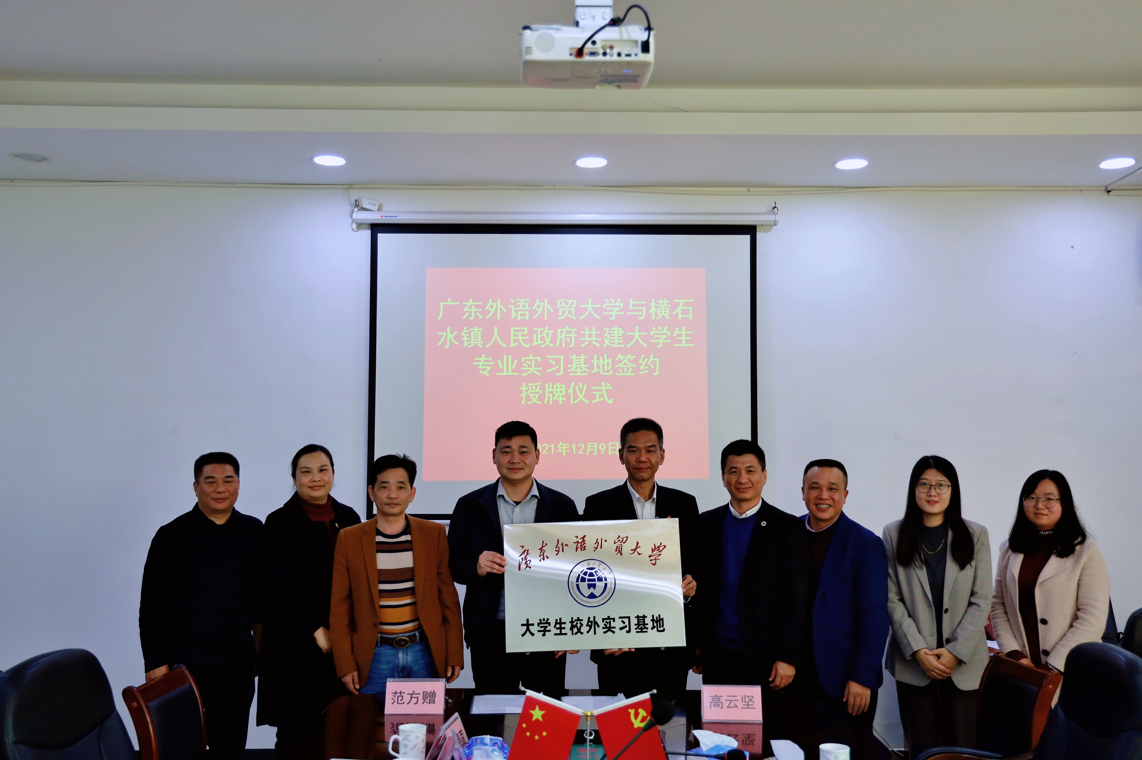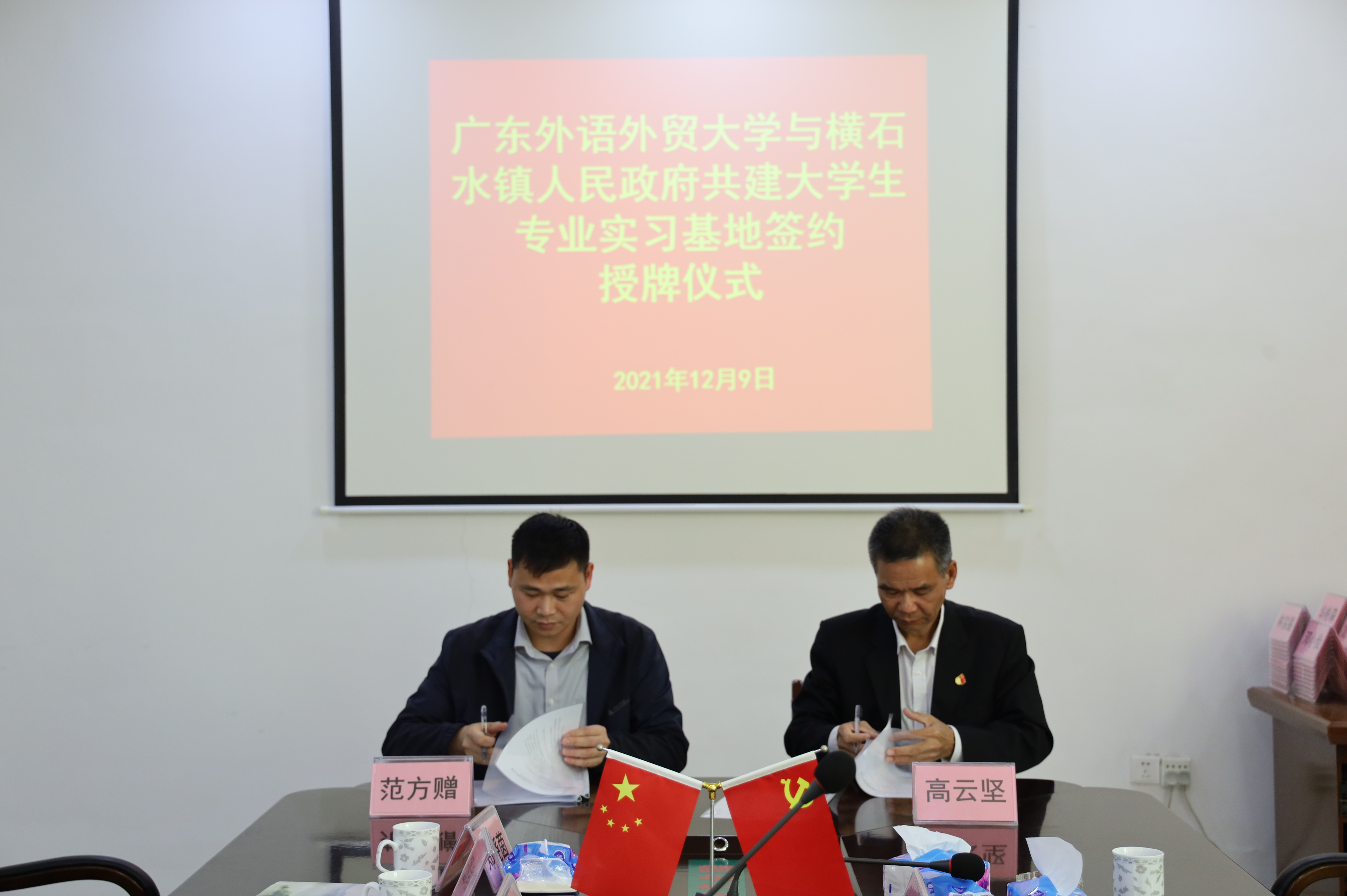 座谈会后,学院党委书记高云坚与横石水镇党委副书记、镇长范方赠共同签署了共建“大学生专业实习基地”协议书。高云坚向范方赠授予“广东外语外贸大学大学生校外实习基地”牌匾,圆满完成了共建大学生专业实习基地座谈会暨签署协议和授牌仪式各项流程。
