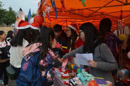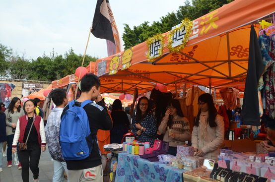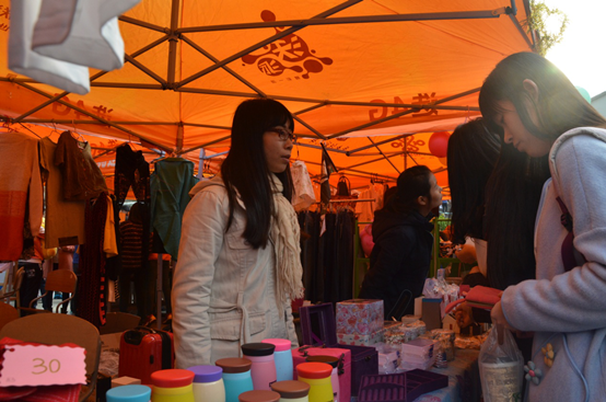 活动现场,各家摊位都卖力推销,热闹非凡。政管学院三支代表队各具特色的商品吸引了众多顾客,直到活动接近尾声,仍有众多顾客在选购。