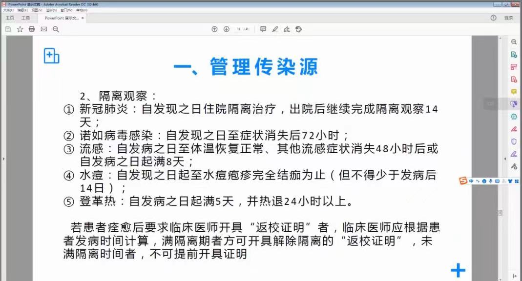 接下来,由门诊部的黎敏老师向同学们科普了秋季传染病的临床表现、传播形式和一些学校常见的传染病,并结合学校的实际情况,跟大家说明了学校相关防范要求,提醒同学们要注意身体,保护好自己。