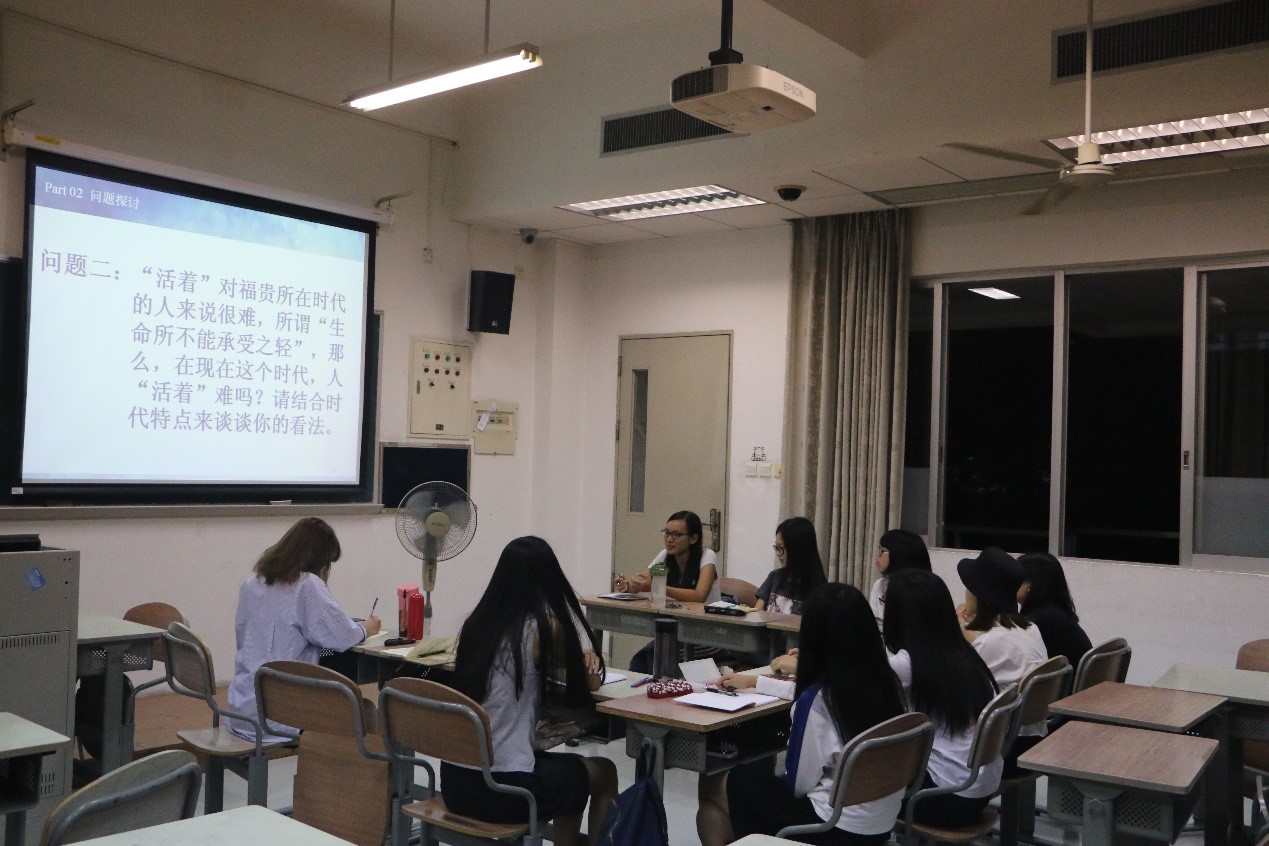 接着,主持人魏泽敏引导着大家进行问题探讨,一次又一次的荒诞离奇地死去,又似乎是不那么寻常,《活着》这本书引起了大家的热烈讨论,“活着”的意义是什么?成员们意见不一,在这场分享会中,大家百花齐放,思想涌流彼此碰撞。成员王玉婧表明:“活着需要你有勇气,需要有胆量,去面对种种艰难的事,熬过了所有的苦难后发现活着有一种特殊意义。”当然,也有成员持着不同的态度,成员苏衔就认为:“其实每个人活着就像跟生命中所遇到的人去互动,去享受这个过程,去跟他们好好互动,体味互动,体味人生百态,那就是好好活着了。”时间一分一秒过去了,会议即将结束,而大家却意犹未尽,彼此尊重地倾听着对方观点进而讨论着。