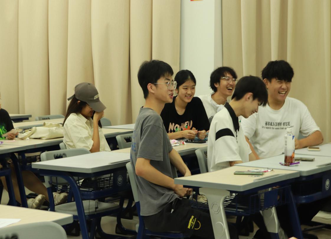 紧接着进入游戏环节。本环节设置了五个趣味小游戏,分别有:逢七必过、手口不一、冰箱里面有什么、答非所问、词语接龙。同学们兴致勃勃地参与其中,活动现场气氛热烈,意趣盎然。