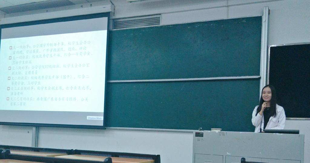 讲座开始前,唐熙淼同学向同学们说明了这次讲座的内容以及目的,也向我们简单地介绍了一下两位优秀的学习榜样,向我们展示了优秀榜样的形象。在同学们热烈的掌声中,戴聪颖学姐走上了讲台。