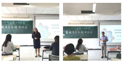 为促进学生了解行业发展前沿,拓展校外专业实践机会,2019年11月9日上午,公管学院在南校区教学楼D512举办研究生“双周”论坛第三讲暨校外导师聘任仪式,广州市启创社会工作服务中心总主任陈敏仪和广州市白云恒福社会工作服务社执行总监李伯平应邀做主题分享并受聘校外导师。学院党委书记高云坚、副院长涂斌、广东社会组织管理学院副院长陈胜、研究生教育中心主任兼MSW中心主任徐盈艳、社会工作系主任陈美招及部分社会工作系老师、研究生、本科生参加了此次论坛,论坛由徐盈艳主任主持。