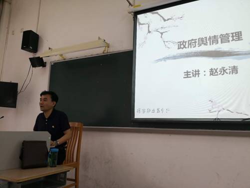 为加强公管学子对于全媒体时代的认识,深入了解政府舆情的特点与处理方法,2018年7月13日9:30,公管学院学生于G107参与了教学实践周之《政府舆情管理》讲座。本次讲座邀请了管理学博士,全国税务系统教材编写委员会评审专家,华南师范大学、华南农业大学客座教授,研究生导师赵永清博士向同学们进行具体讲解与案例分享。讲座由张晓念同学主持。