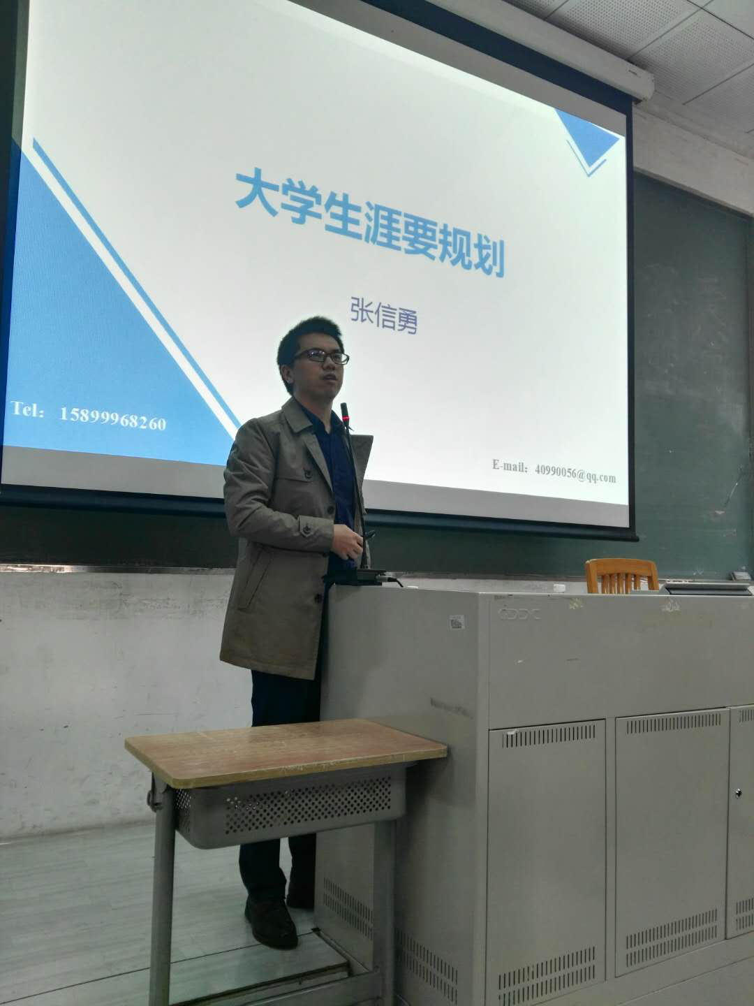 在同学热情的掌声中,副院长张信勇老师向同学们讲解关于生涯规划的知识。首先,张老师分享了对“生涯”这一概念的理解,并围绕着“角色”“环境”“事件”这三个关键词进一步给同学们阐述了清晰生涯的内涵。随后,张老师从生涯认知、环境适应、自我管理等方面向同学们介绍了生涯规划的具体表现,并以“我的大学”为例,结合生活实际,对学习进修、职业发展人际交往、个人情感身心健康、休闲娱乐、财务管理、家庭生活、服务社会九个维度一一进行详尽的探讨。
