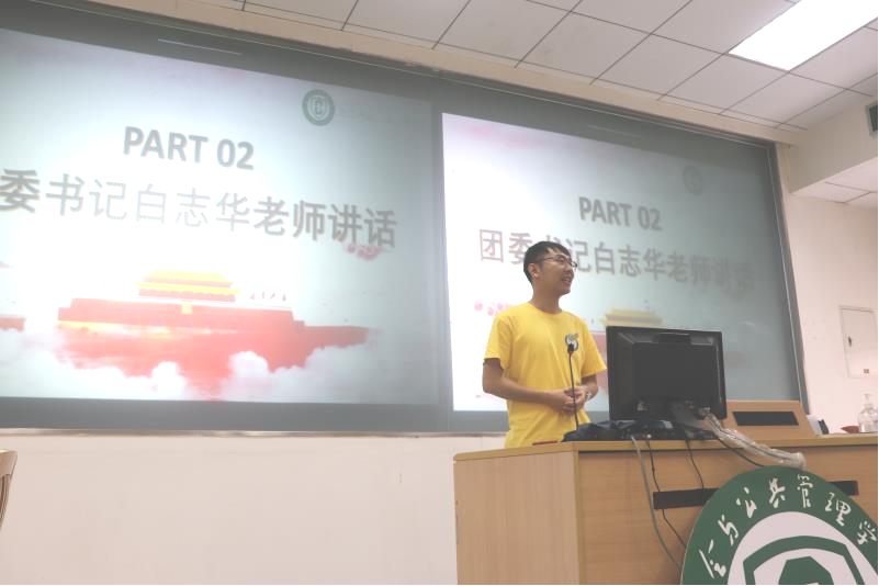 其次,团委书记白志华老师对团委全体学生加入团学大家庭表示热烈欢迎。白志华老师提出学生干部要切实提高解决实际问题的能力。对团学工作中不忘初心,牢记使命,吃苦耐劳,服务同学的工作行为进行表扬。同时指出本学期学院将会重新组织干部培训,邀请更多优秀团队来跟大家进行互动和分享,相信团学各部门成员们齐心协力,敢干事干实事,在团学组织工作中有所收获,有所成长。
