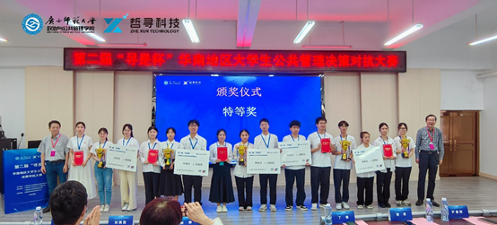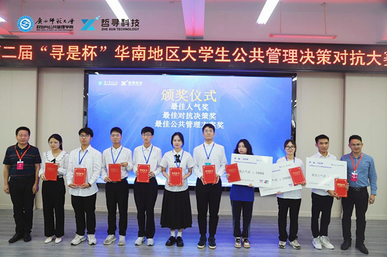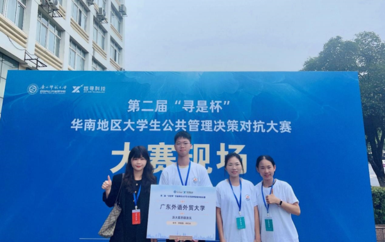 本网讯 6月24-25日,由广西高校公共管理类教学指导委员会主办,广西师范大学政治与公共管理学院、广西师范大学应急管理研究院承办、上海哲寻信息科技有限公司提供技术支持的第二届“寻是杯”华南地区大学生公共管理决策对抗大赛在广西师范大学育才校区举行。本次大赛有华南地区35所高校,共36支队伍参赛,由我院三名学子组成的广东外语外贸大学代表队从36支队伍中脱颖而出,荣获特等奖和最佳对抗决策奖。