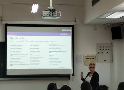 11月8号上午,在学校国际合作与交流处的大力支持下,澳洲昆士兰大学人文社会科学学院的Lute Coremans女士到访我院,在南校区教学楼D509举行了2+2双学位项目的招生宣讲会。有意向申请此项目的公管学院学生参加了本次活动,宣讲会由公共关系学系主任张月老师主持。