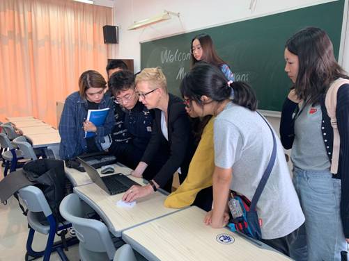 在宣讲结束后,同学们将宣讲老师团团围住,积极询问自己关心的问题,Lute Coremans女士不厌其烦详细解答同学们的疑问,并留下她的邮箱积极欢迎同学们有问题随时沟通。此次活动的成功举行,为我院学生进一步提供了拓展国际视野的机会。
