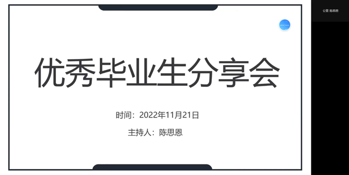 本次分享会共分为四个环节,分别是陈书记讲话,优秀毕业生殷婉儿就职分享,毕业生刘钰洁国考分享,以及辅导员叮嘱。