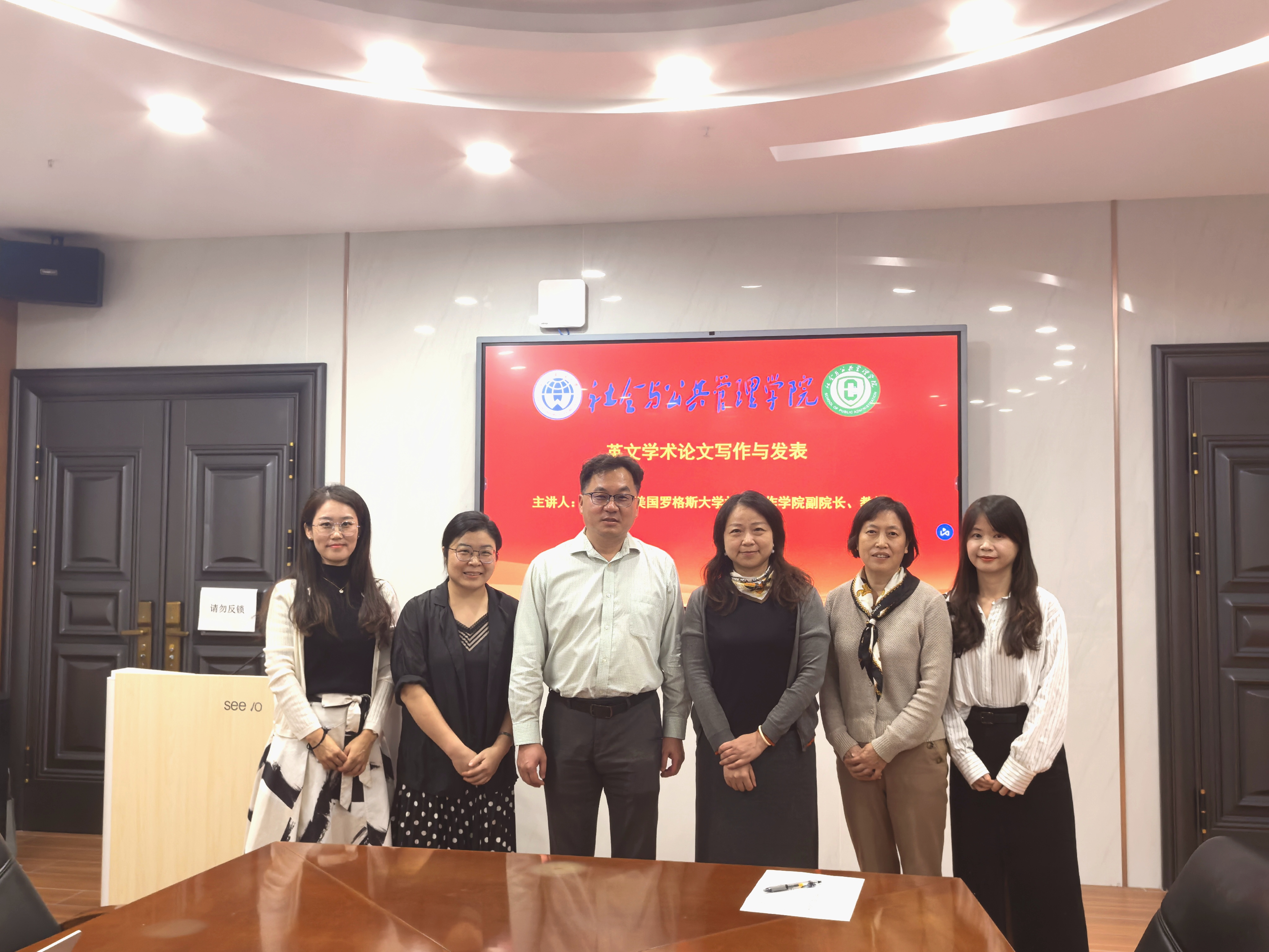 本网讯 12月11日,美国罗格斯大学社会工作学院副院长、知名学者黄建忠教授应邀来我院开展题为“英文学术论文写作与发表”的学术讲座。讲座由我院涂斌院长主持,陈胜副院长、院长助理兼行政管理系主任杨美芬老师、刘丽虹老师、吴月老师、贾晶晶老师以及在校研究生参加了本次讲座。