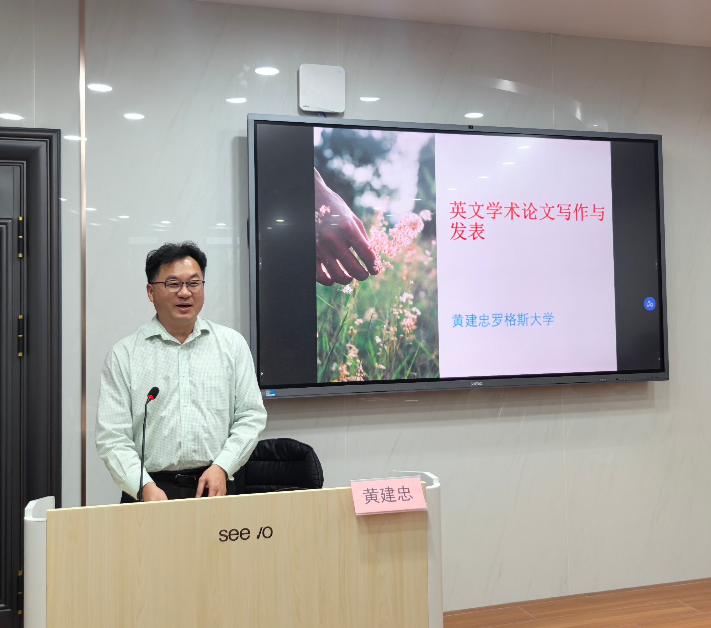 最后,在场师生对黄教授的倾囊相授表示感谢。本次讲座内容详实、案例鲜活,为师生破解英文学术发表难题提供了有效方法,对促进跨文化交流以及对个人学术和职业发展具有重要意义。讲座结束后,在场师生与黄教授一同合影留念。