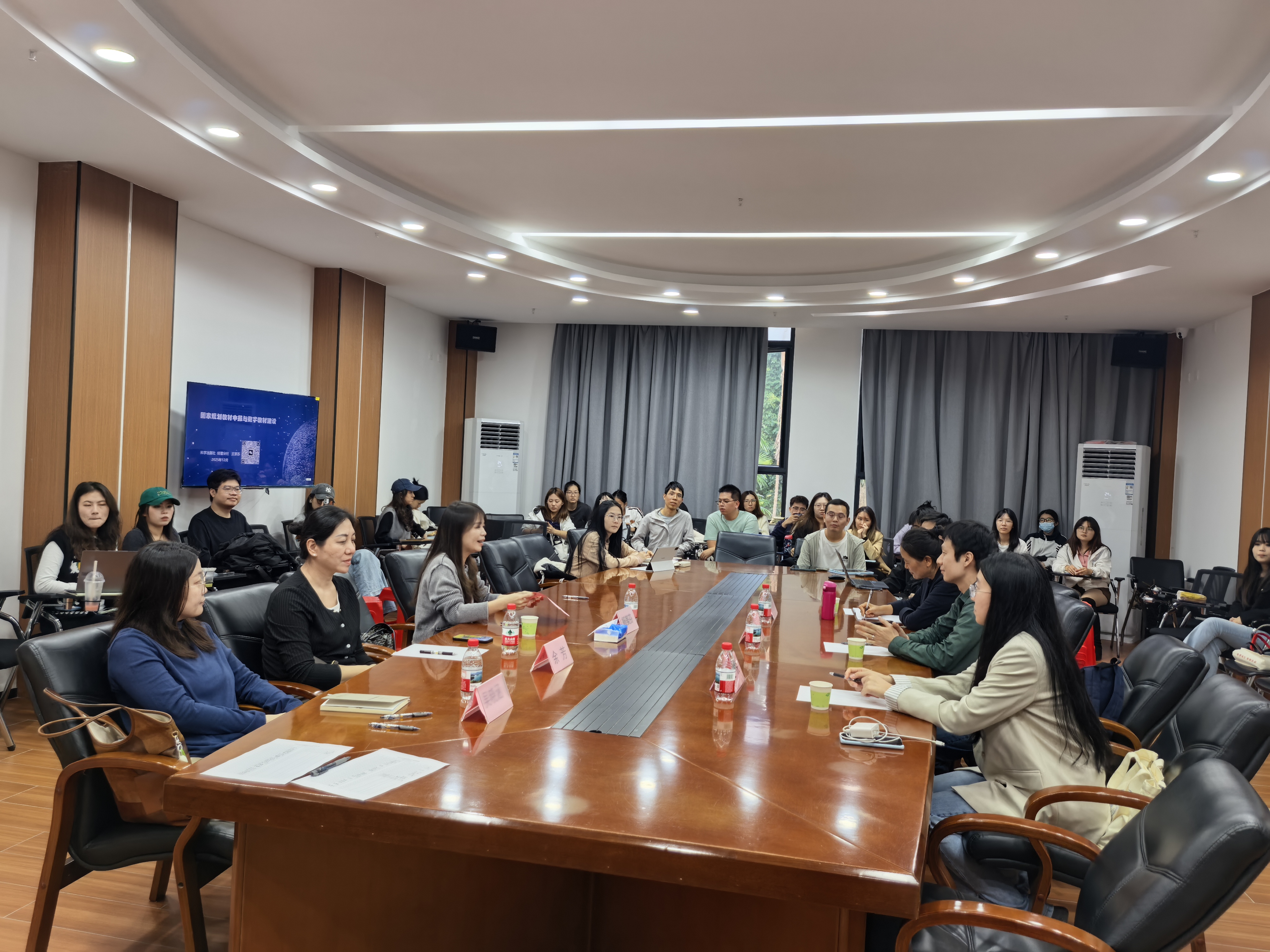 本网讯 为助力教师精准把握国家规划教材申报政策,推动高校数字教材与教学融合创新,12月18日,学院特邀科学出版社经管分社策划编辑、高等教育教材业务负责人、副编审王京苏老师,开展“国家规划教材申报与数字教材建设”专题讲座。学院院长助理兼行政管理系主任杨美芬老师、吴月老师、刘玉蓉老师、余芳老师、吴晓涵老师以及在校研究生参加本次讲座。
