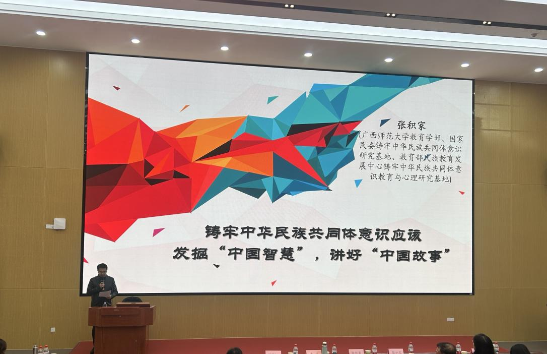 本网讯 12月25日下午,为帮助师生理解文化多样性对认知与人格的塑造,从而增强文化自信,深化对中华民族多元一体格局的认识,铸牢中华民族共同体意识,学院特邀中国人民大学二级教授、广西师范大学教育学部特聘教授张积家主讲“铸牢中华民族共同体意识应该发掘‘中国智慧’,讲好‘中国故事’”的学术讲座,讲座吸引了学院师生及校内对相关领域感兴趣的百余名同学到场聆听。讲座由学院副院长张信勇主持。