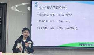 确定了选题方向后,如何搭建研究框架?谢老师区分了两种基本类型:一是描述性研究(回答“是什么”):可通过限定研究对象(如“都市青年”而非“青年”)、研究区域(如“广州市”而非“全国”)、时间跨度(如“近五年”)等方式,使主题聚焦。二是 解释性研究(回答“为什么”或“会怎样”):需明确因果方向,是探究原因还是影响后果,并进一步聚焦于少数关键变量(如只研究“媒体内容”对青少年犯罪的影响)。