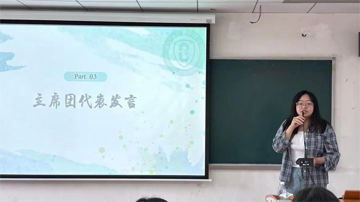 紧接着,主席团代表高小萱分享了自身的学生服务经历,在回顾一年来主席团与各部门协同配合的珍贵经历后表达了往后与各位团学成员砥砺前行、续写大学青春华章的期待。