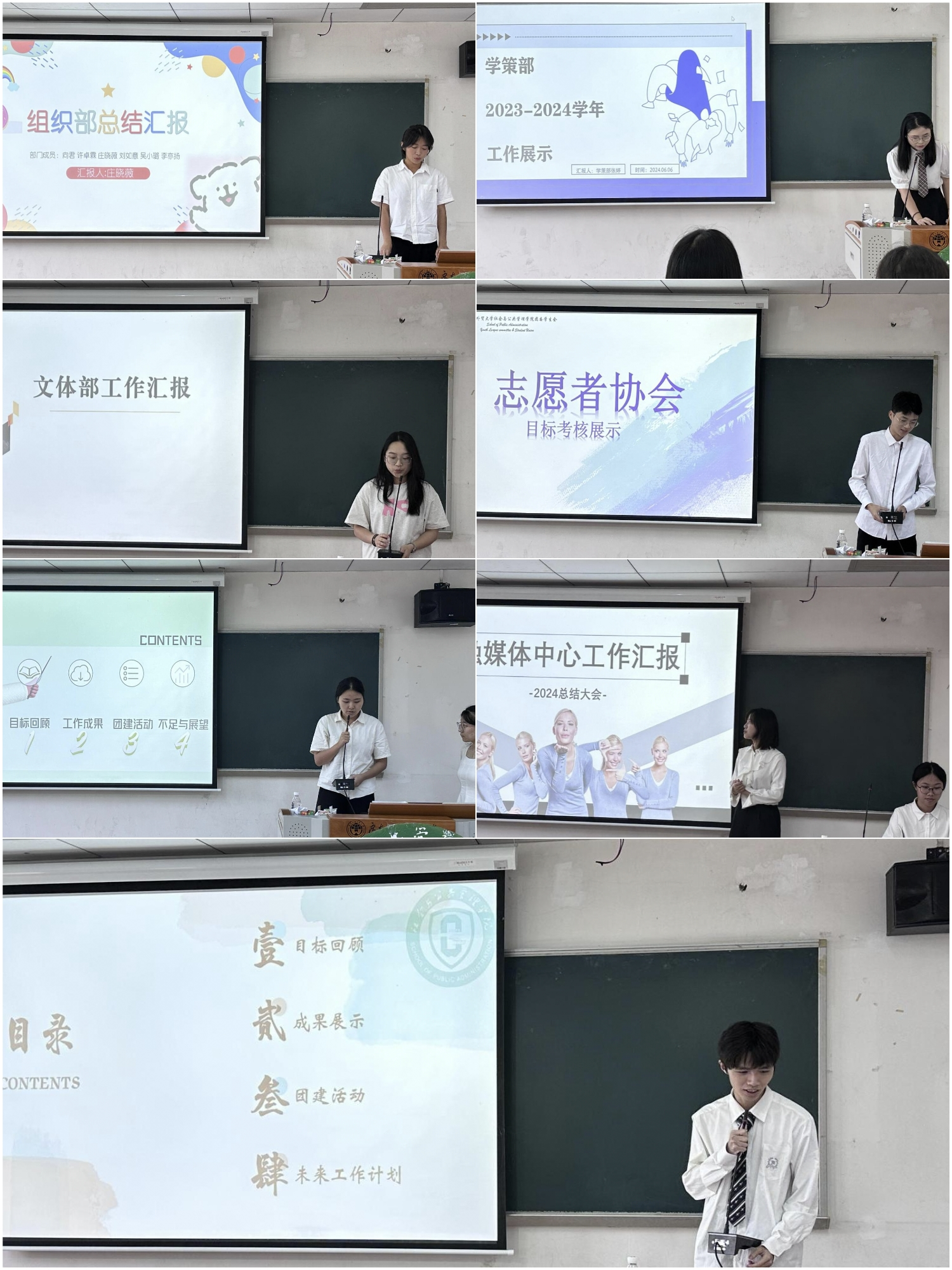 随即,各部门依次进行学期工作回顾与总结,主要从工作亮点、存在问题和未来规划等方面进行了汇报展示。汇报过程中成员们意识到团学的稳定发展离不开部门间的团结协作,离不开大家的各司其职,每个部门都在团学的发展中发挥着至关重要的作用。