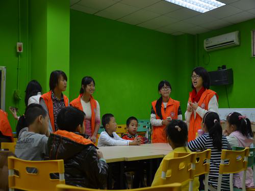 2013年12月7日上午10:00,在政治与公共管理学院团委学生会主席徐小琪和志协负责人的带领下,六名志愿者来到“亲青家园白云区青少年服务中心”。此行目的是在服务中心开展“亲青家园”英语角活动。志愿者们本着“以专业知识服务人,以奉献精神感动人”的宗旨,希望把这份爱带给小朋友们,让他们在快乐的英语教学中学习英语感受向上精神,接受英语文化熏陶。
