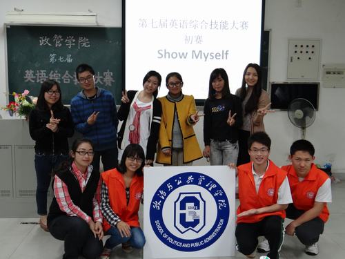 3月29日晚六点三十分,“Show Myself”2012-2013年政管学院第七届英语综合技能大赛初赛在教学楼G209隆重拉开帷幕。此次比赛还邀请了政管学院的赵静欣、英教学院的张天琦和杨柔以及黄瑶担任评委。