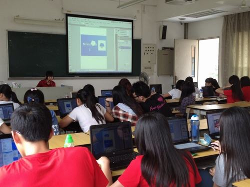 从移动工具、套索工具、选框工具、魔棒工具、到画笔工具等等,老师一个个在电脑上操作给我们看,每一个步骤都鲜明地展示在屏幕上。老师操作后,给一点时间让学员自己动手试试。虽然很多同学都知道PS,然而对于其具体操作不甚了解。因此,在真正的动手时候,还是会遇到许多问题。这时候,老师走到台下,亲自对学员进行辅导,为学员解疑答惑。同时,宣传部的干事们也帮助自己小组的成员解决实际操作中遇到的困难。