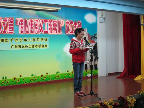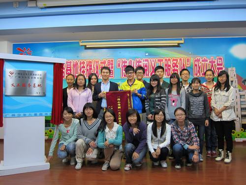 2012年11月18日上午10点,政管学院师生在广州少年儿童图书馆海珠馆报告厅参加了义工联共建单位挂牌仪式暨“传心传阅义工服务队”成立仪式。