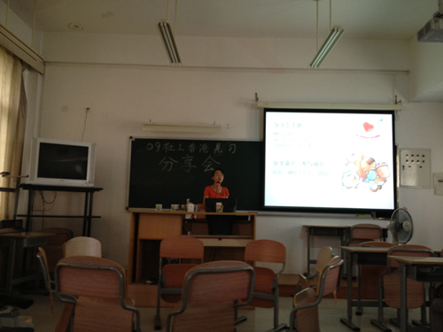 2012年6月11日,下午4点,政管学院09社会工作班在南校区教学楼G408举办了针对5月底赴香港社工机构见习之行的经验分享会,这也是第二届政管学院社会工作专业学生香港见习分享会。