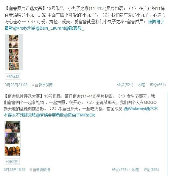 本次比赛的时间为3月16日至3月31日,一共分为三个阶段,分别是作品展示转发环节,作品投票和评委打分环节。在转发和投票环节中,参赛选手积极宣传和拉票,同学们热烈参与转发和投票。尤其是在投票环节,整个活动到达了高潮。参与投票的微博用户达到了2804个,影响甚大。整个活动受到了极广泛的关注和支持。