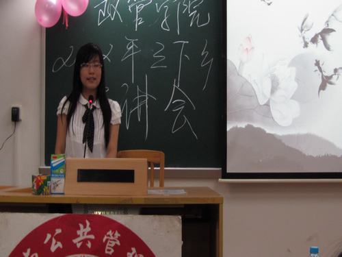 2012年5月20日晚上7点,政管学院2012年三下乡宣讲会在教学楼G206顺利举行,此次宣讲会主要是介绍三下乡的一些相关问题及由去年三下乡队伍队长分享一下经验,宣讲会由实践部部长翁丹莉主持。