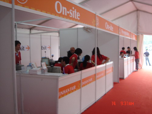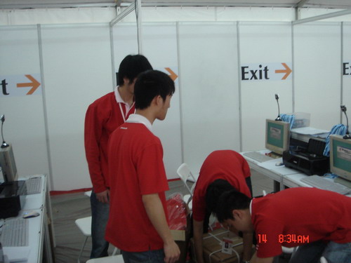 4月14日,星期一,为期两周多的锦汉会展实习工作正式拉开了序幕。早上7点50分左右,在1号馆的1A办证处已经可以看到身着红色T恤的工作人员,随着各个主管的出现,紧张的准备会馆宣传资料,调试设备以后,各个办证点已经基本准备就绪,