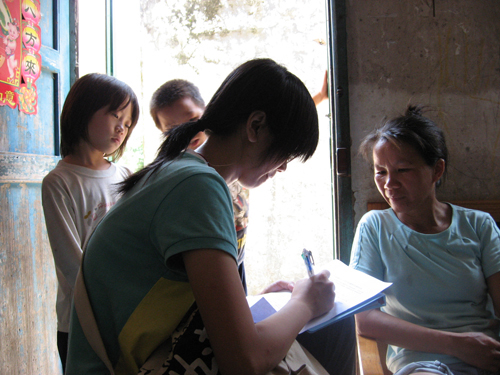 正值暑假期间,洛洞小学大门紧闭。在向村委了解当地情况和人口分布后,问卷调查和访谈也拉开了序幕。通过调查得知,两年前洛洞小学与汤塘中心小学合并,五、六年级的小学生上学都要跋山涉水十几公里,家长们也由此担心不已却又无可奈何。山路难走,雨季时更是险象环生。另外,前往中心小学需经省道和国道,大型车辆又无疑给本来糟糕的路况增加了负面因素。众人拾柴火焰高,村里曾经发动过大家凑钱请汽车来接送学生,可车才开了两趟,司机却都打退堂鼓了。“路难走,孩子又顽皮,出了事情谁负得起?”还有,正所谓道不同,不相为谋。洛洞人说客家话,合并后难免与白话文化的当地人产生纠纷。“他们(当地人)以多欺少,老是半路拦着孩子,打架闹事。那天我盼着阿明(被采访村民的孩子)回家吃饭,可是过了12点还不见人影。我在村头盼啊盼,踮着脚张望。到了一点多才看见阿明一路哭着走回来,满脸都是血。村中的一位母亲泪流满面地诉说着她的心酸……唉,真是可怜天下父母心!