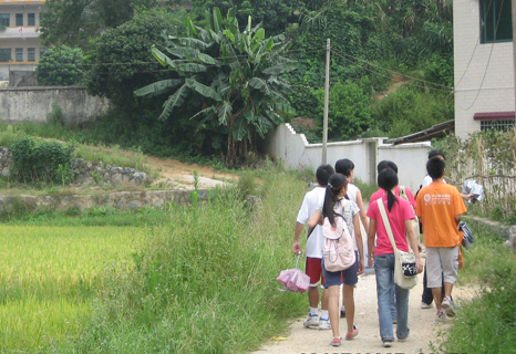 7月21日,,天气晴朗。经过几天的资料收集和问卷设定,我们调研组的活动进入了第三阶段,实地采访。通过之前的分析和讨论,我们将目标锁定在清远市汤塘镇的中、小学合并问题上,而我们的第一站就是学校合并距离达到十多公里的洛洞村。