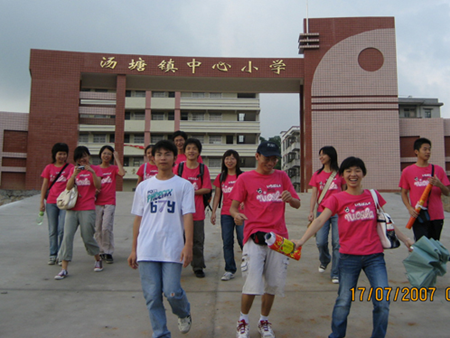 | 2007年7月17日星期二,政管学院三下乡服务队——晨光舰队乘风而进,在清远市汤塘镇市场进行大型海报展,全方位、多角度地展现了广外大的校园文化。