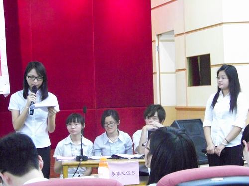 决赛主要是用小组展示的方式,每个小组两个代表队,每个代表队展示完毕以后是三分钟的问答时间。首先是我校的Sweet队与广工代表Smile up队。我校代表队采用PPT展示方式,展示内容共有三个部分,分别是问题分析、介入和干预、参考文献。在第二部分中,他们根据社工介入个案的工作流程,介绍了详细的理论依据、介入方法、工作计划以及评估反思。结束展示后,我校代表队也详细地回答了对方Smile up队的提问,展示完美结束。