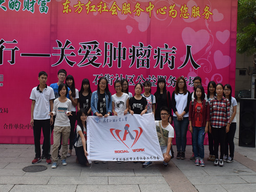 2014年10月24日上午9:00-12:00,由广州市民政局主办的、东方红社会服务中心承办的医路同行,关爱肿瘤病人项目石街社区公益服务专场活动在广州市番禺区市桥街街道办事处石街社区新广场如火如荼地展开。医路同行,关爱肿瘤病人项目石街社区公益服务专场是广州市首届公益创投项目,此次活动旨在关爱肿瘤病人,同时深入社区向大家宣传防癌知识并为有需要的居民提供相关资源及建议以及引起政府部门对贫困肿瘤患者这一弱势群体的重视,以便协助政府为这一群体提供更好的服务,以此来达到公益创投的社会效益和公益价值。