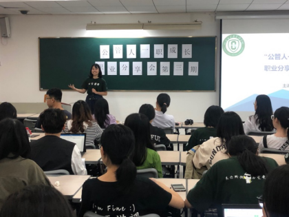 首先,钟绮雯介绍了与银行相关的部分职业和银行文化,详细介绍了在银行工作的薪酬构成。她还与大家分享了自己在大学期间的三年党小组负责人经历和丰富的实习经历,以此来介绍银行的基本入职要求,让同学们更好地了解在银行求职的条件。同时,她分享了身边同学本科毕业后不同走向的现状,让同学们对就业、考研、留学等选择有了更深刻的认识。在她分享的最后,钟绮雯鼓励大家要在大学中多体验,多尝试,找准自己的方向并为之努力。