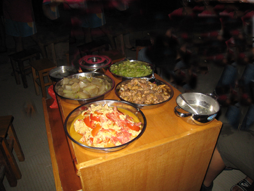 都飞宇同学是我们队的炊事总监。他的脸长得方方正正,黑不溜秋的,按照他自己的话说是:长得比较搞笑,活得比较“讥诮”。我们下乡的地点要求我们自己烧火煮饭,飞宇一开始就自告奋勇的担当了这个职务。平时买菜,生火,煮菜,洗锅,样样亲力亲为,而且还要做好义教的工作。可想而知他的任务是多么的繁重。大家笑他已经变成了“非洲难民”了。