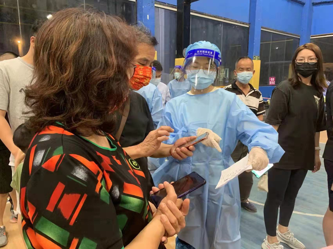 图1:李秋容同学在协助社区居民录入粤核酸码